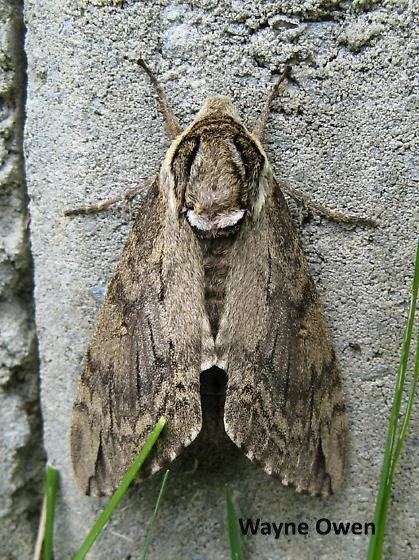Adult catalpa sphinx moths blend in with substrates like the brown bark of trees. Thanks to Wayne Owen for the use of his great image.